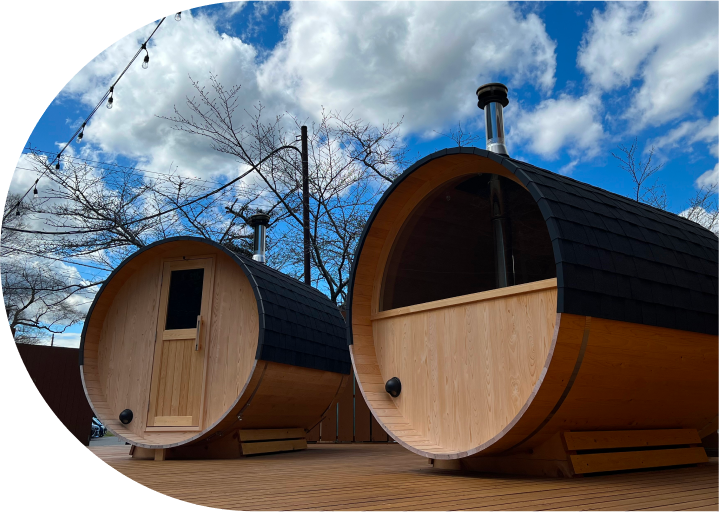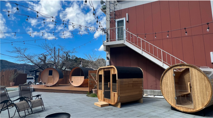 KULTAは、大小5台ものバレルサウナが並ぶアウトドアサウナです。