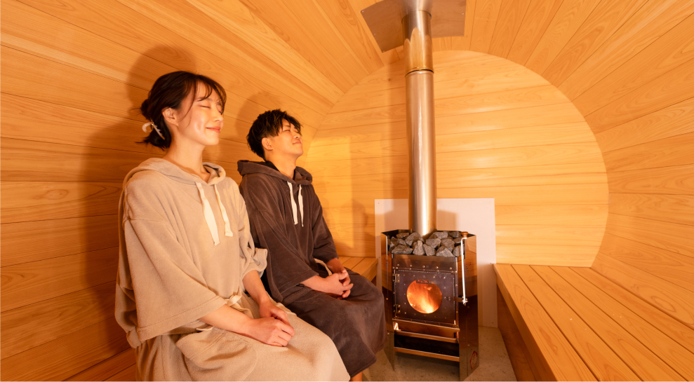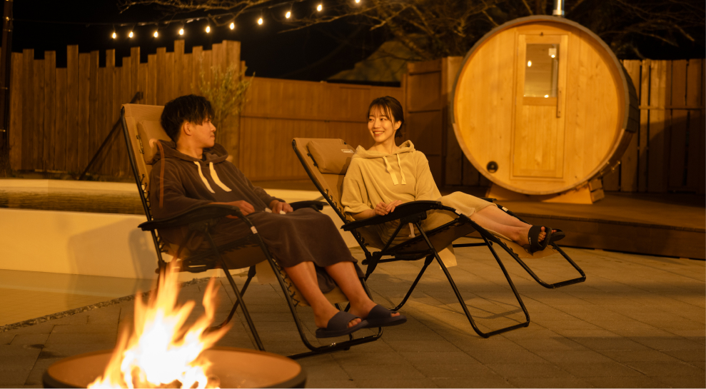 焚き火を眺めながらゆっくりできる空間は贅沢なととのい空間を提供します。