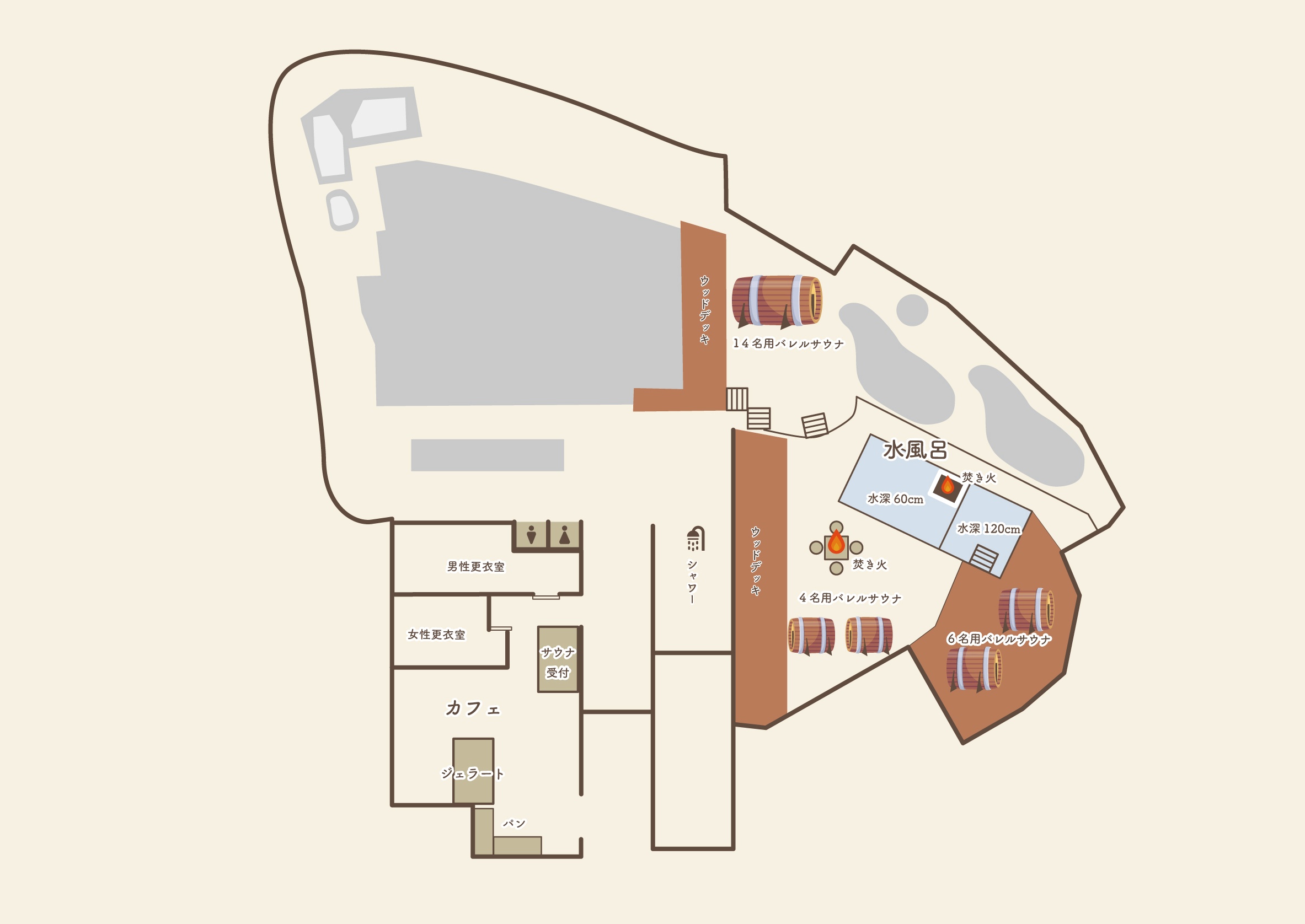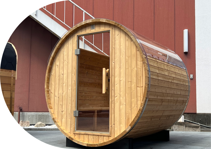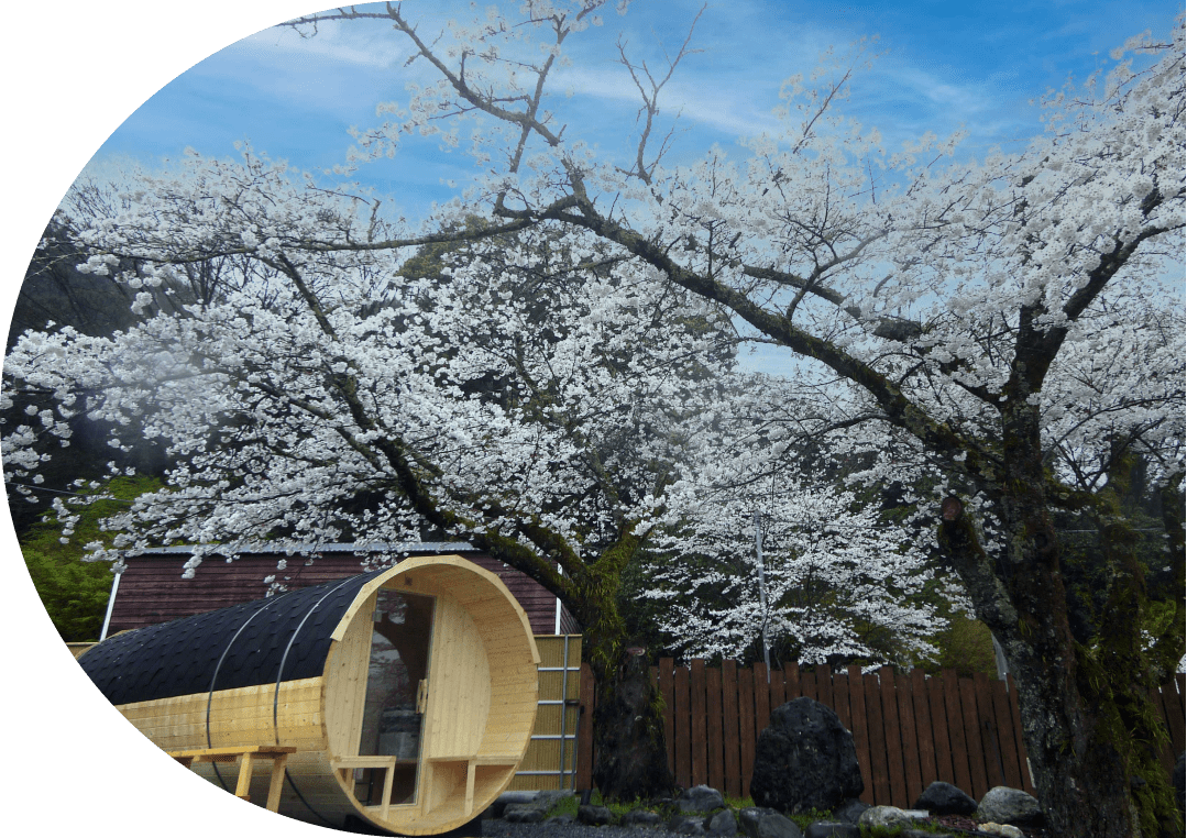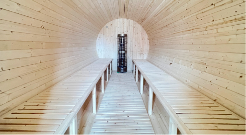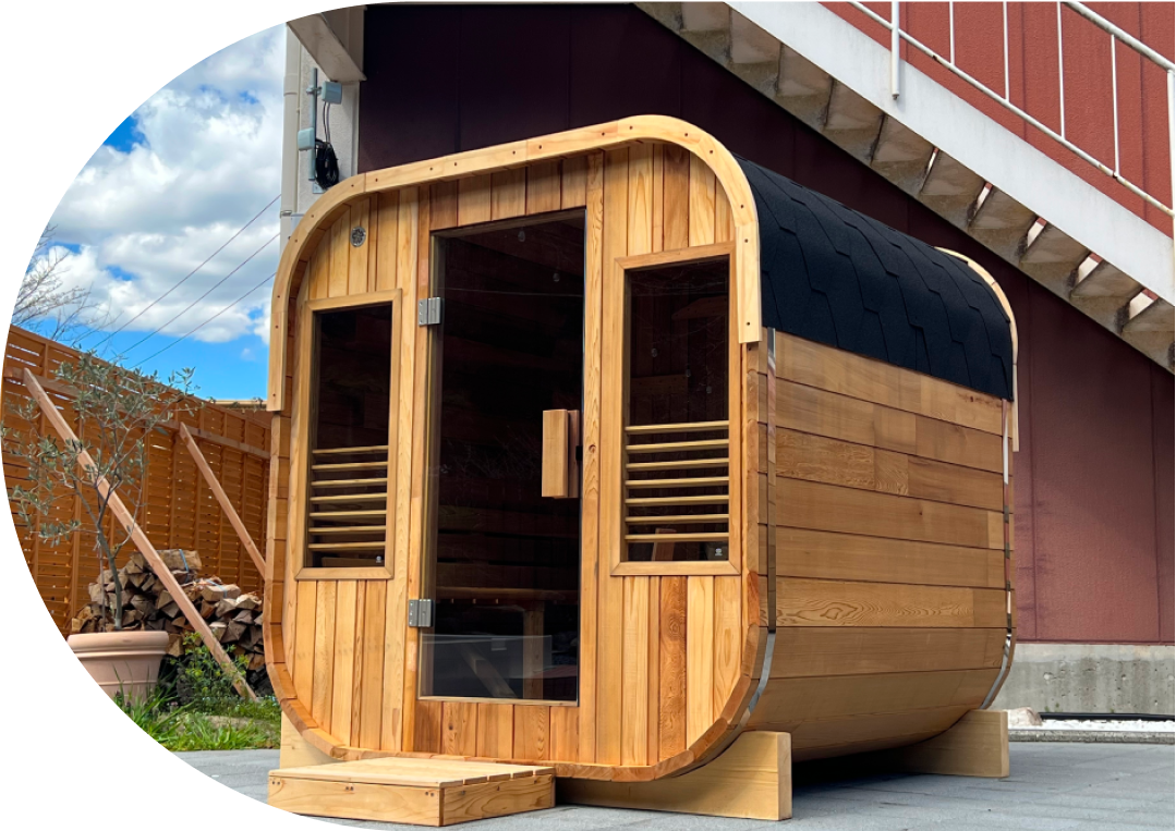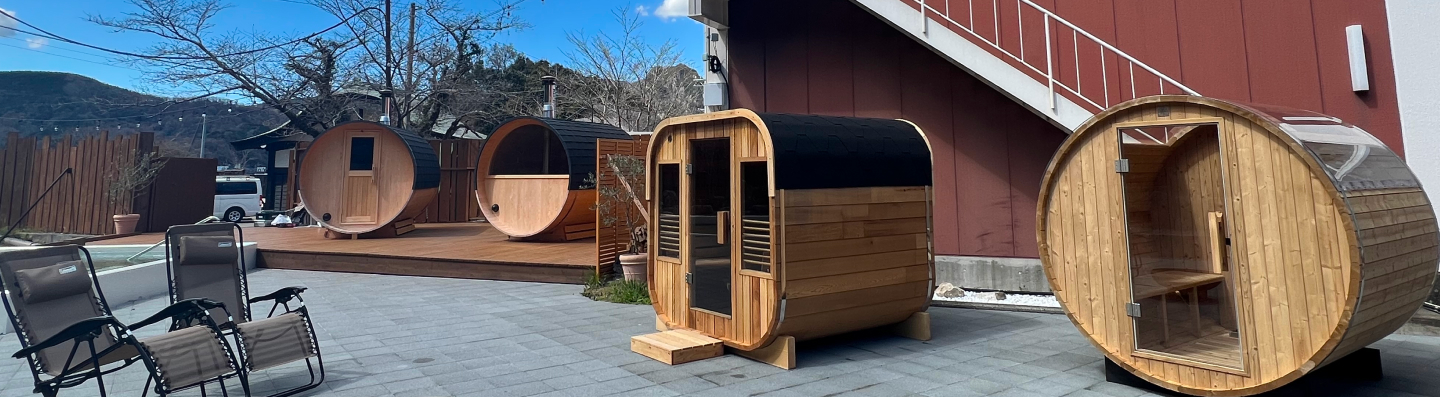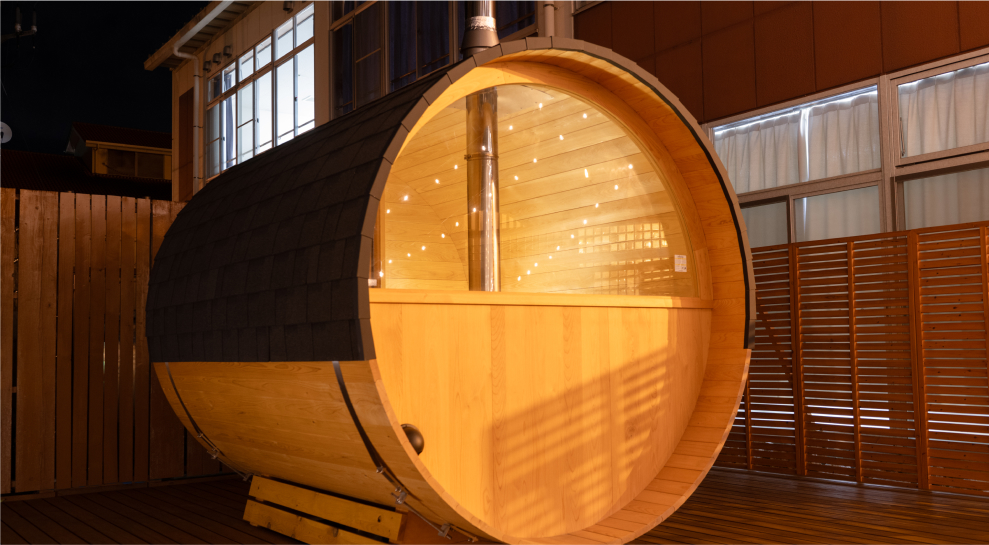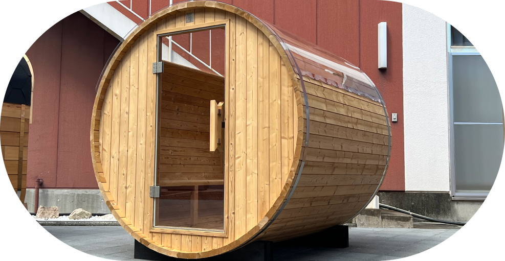 そのうちの1台は日本には数少ない大型のバレルサウナで、〜14人入れます。